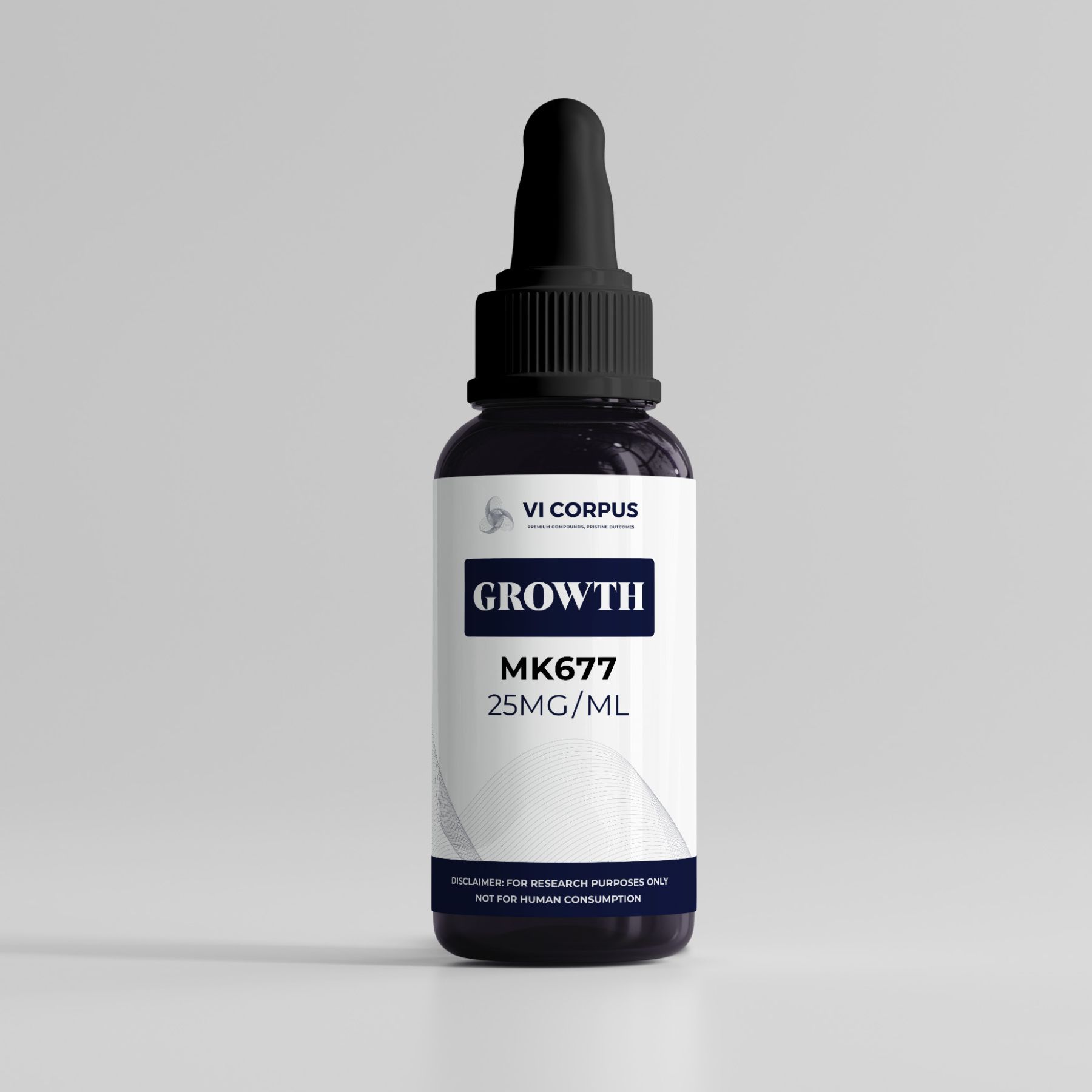 GROWTH (MK677), available in a 25mg/ml dosage, is a highly effective SARM for those aiming to boost muscle mass and size. Known as ibutamoren, it stimulates growth hormone (GH) secretion and raises insulin-like growth factor 1 (IGF-1) levels by mimicking ghrelin and binding to ghrelin receptors in the brain. Ideal for elevating overall muscle mass and physical stature, GROWTH (MK677) offers a range of benefits including muscle building, reduction of muscle wasting, increased bone density, improved sleep quality, anti-aging effects, and potential nootropic benefits. It’s particularly beneficial for treating growth hormone deficiency. MK-677’s role as a growth hormone secretagogue receptor (GHS-R) agonist also contributes to improved body composition, bone density, and cognitive function in older adults. Administered orally, it is a powerful tool for enhancing training outcomes and physical development. GROWTH (MK677) is an innovative, result-producing oral SARM (Selective Androgen Receptor Modulator) backed by scientific research and made available by VI Corpus to order now. Dosage: 25mg / ml